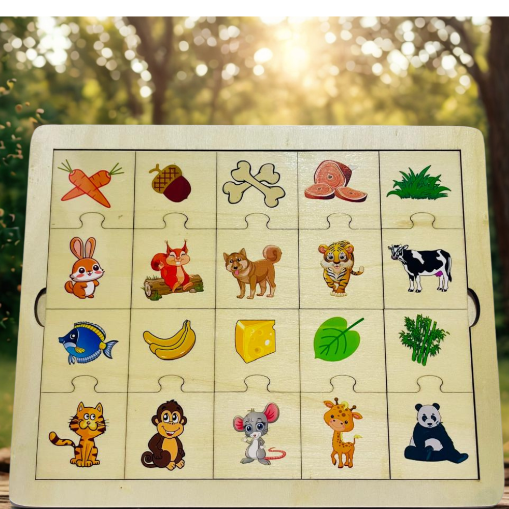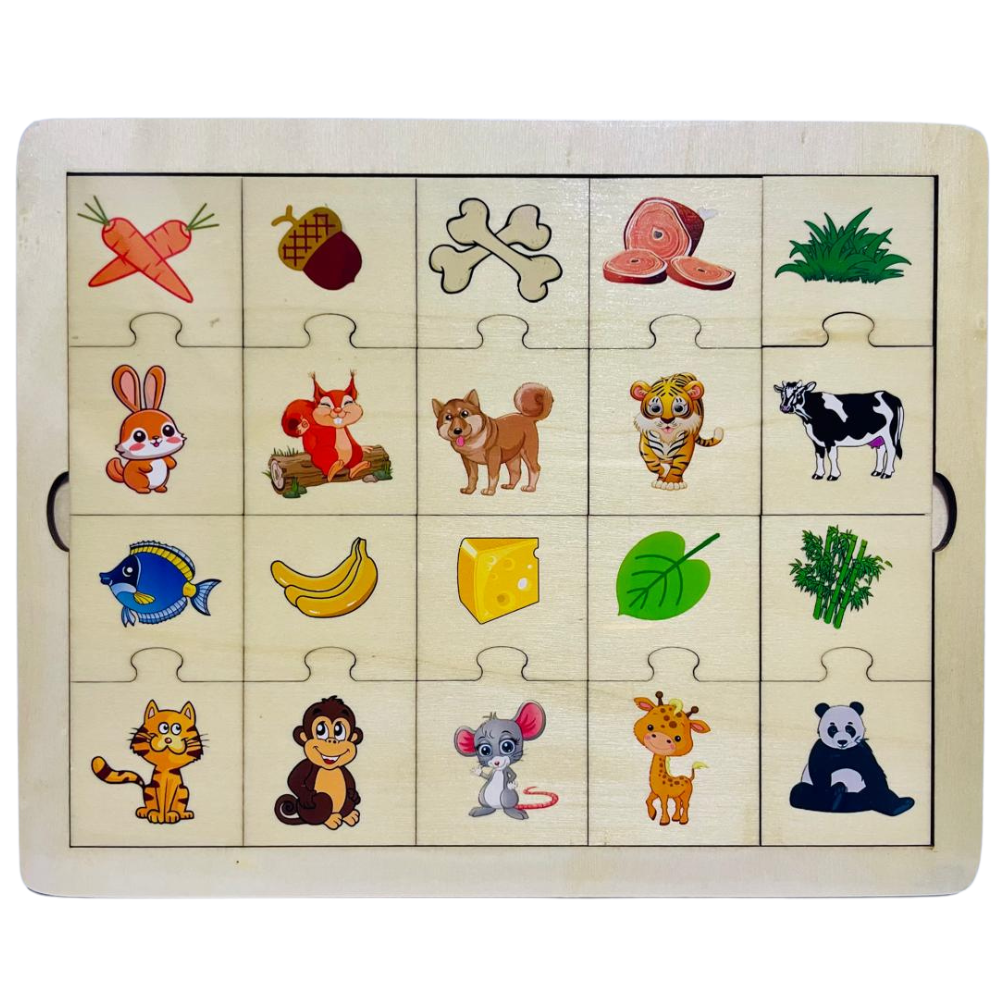 Animal & Food Wooden Puzzle Board – 20-Piece Educational Matching Game