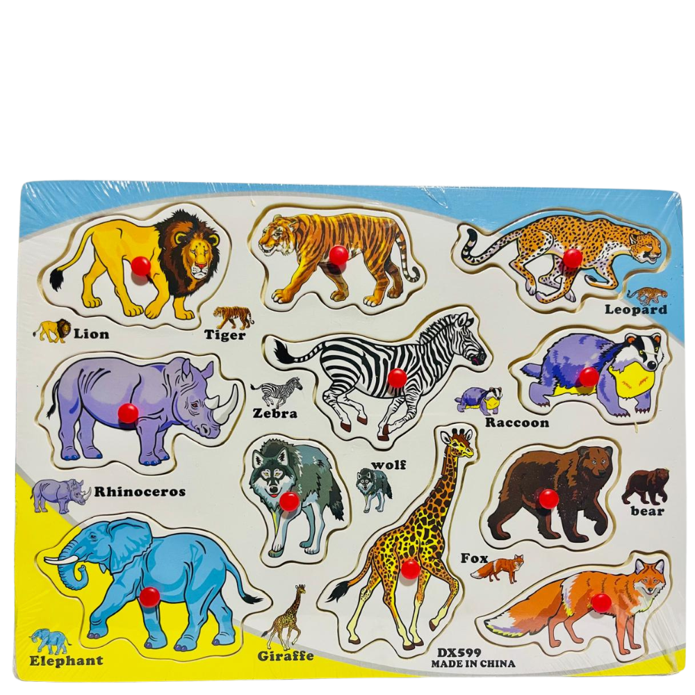 Animal Wooden Puzzle Board – Educational Knob Tray for Kids
