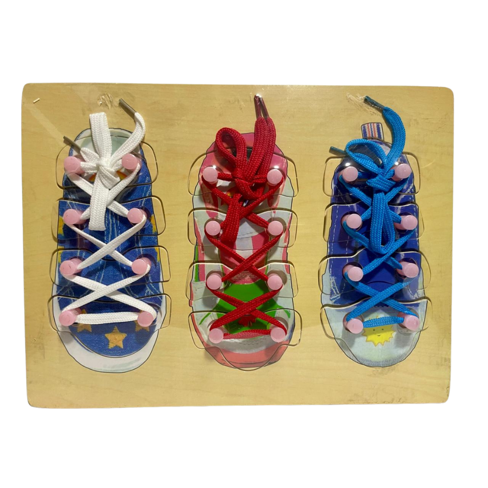 Wooden Laces Plate – Learn to Lace Shoes Toy for Kids